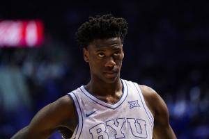 此役,2026年NBA状元热门、杨百翰大学前锋迪班萨表现神勇,他上阵37分钟21投15中,三分6中2、罚球9中8,狂轰40分9篮板6助攻3抢断,6失误瑕不掩瑜。