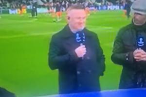 鲁尼当时正在与斯图里奇搭档,进行纽卡vs巴萨的赛前评论。主持人告诉了两人利物浦0-1输给加拉塔萨雷的消息,鲁尼的脸上立即露出了笑容。