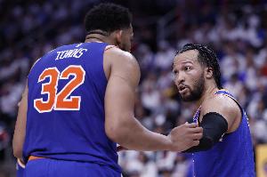 本场比赛,尼克斯多点开花,4人得分20+,其中布伦森28分,克拉克森27分,阿努诺比22分,唐斯21分。