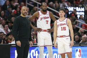 火箭本赛季至今场均失误15.8次,联盟第四多(仅少于开拓者、篮网和勇士)