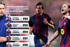 本场比赛德容替补登场,这是他第292次为巴萨出战,追平了科库保持的荷兰球员为巴萨出场纪录。此外科曼264场位列第三,克鲁伊维特257场第四,雷齐格255场第五。